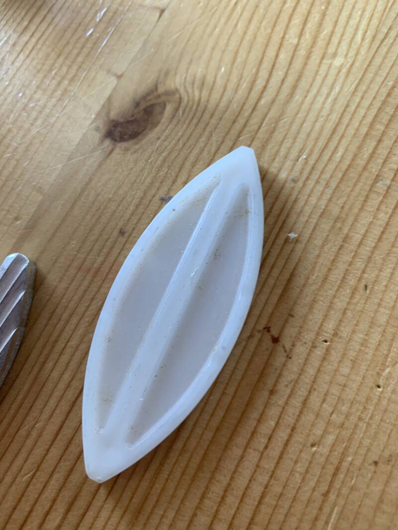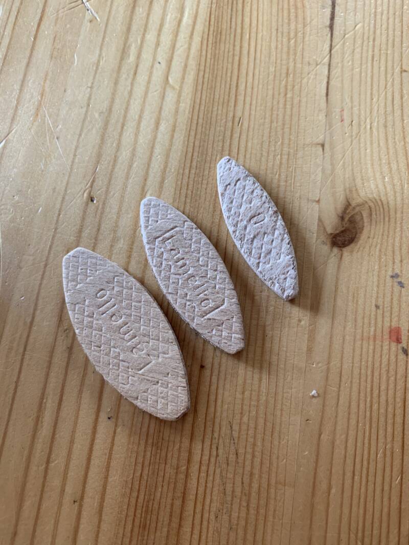 Weer een uitsparing maken, je lijmt 1 kant van de lamello en de andere verbindt je hierin.